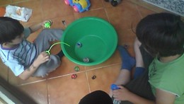 depois de partirem a «pista» dos bayblades, tiveram de improvisar e lá foram buscar a bacia mais geitosa...que também partiram, na fúria do combate. O dia da criança foi passado entre várias actividades promovidas pelas escolas (desde insufláveis a aulas cívicas sobre poupança de recursos valiosos como a água) e com ofertas que eles adoraram - o mais novo foi presenteado com um livro e um diploma dos direitos da Criança e o Rafa recebeu uma t'shirt.
