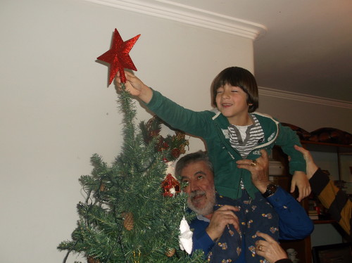 pronto! isto para dizer que agora, embora se inicie no primeiro de dezembro, também se conclui nesse dia, pois eles querem ver tudo no imediato. Fazer a árvore entre eles não demora mais de 5 minutos! então tudo o que seja, parar para observar o melhor sítio e só depois colocar a bola ou a fita, nem sequer faz sentido...e para o Rafa o desespero da espera pelo dia(noite) 24 já começou, claro!
